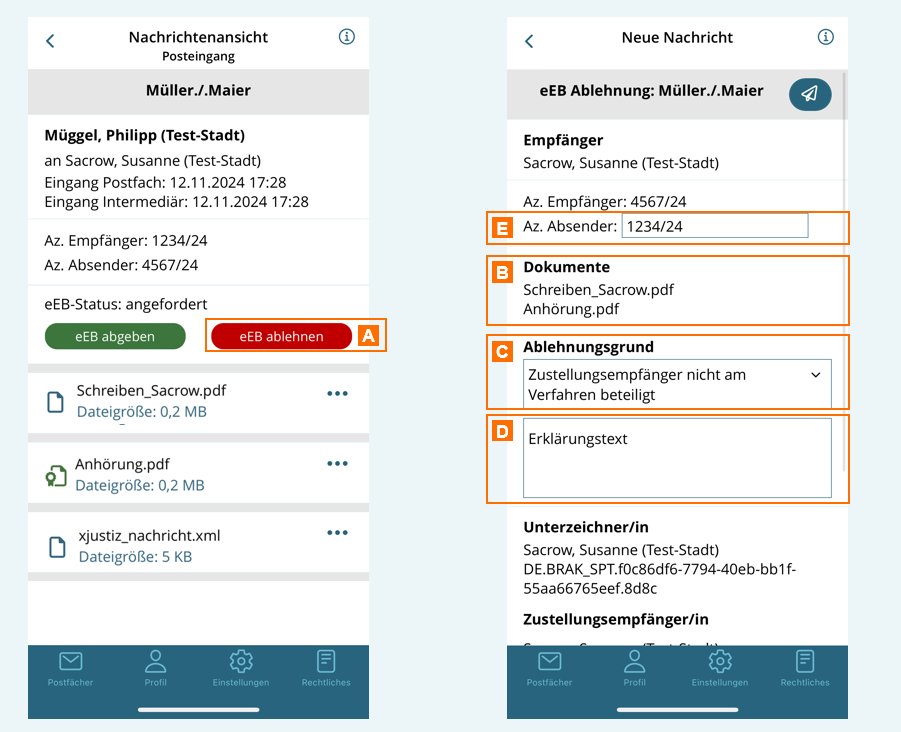 Um ein eEB abzugeben, tippen Sie in der geöffneten Nachricht auf "eEB ablehnen" A.